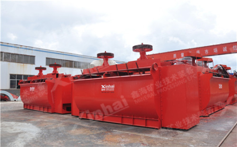 JJF型浮选机搅拌程度适中,固体颗粒悬浮良好,不沉槽,停车不用放矿;液面比较平稳,分选效率比较高;叶轮浸没深度浅,圆周速度低,功耗省,易损件寿命长,维修方便;设有假底和导流管,具有自吸空气能力。 SF与JJF型浮选机组。该机组利用SF型浮选机有自吸矿浆能力而做吸入槽,JJF型浮选机做直流槽,整个机组可 水平配置,不用泡沫泵。